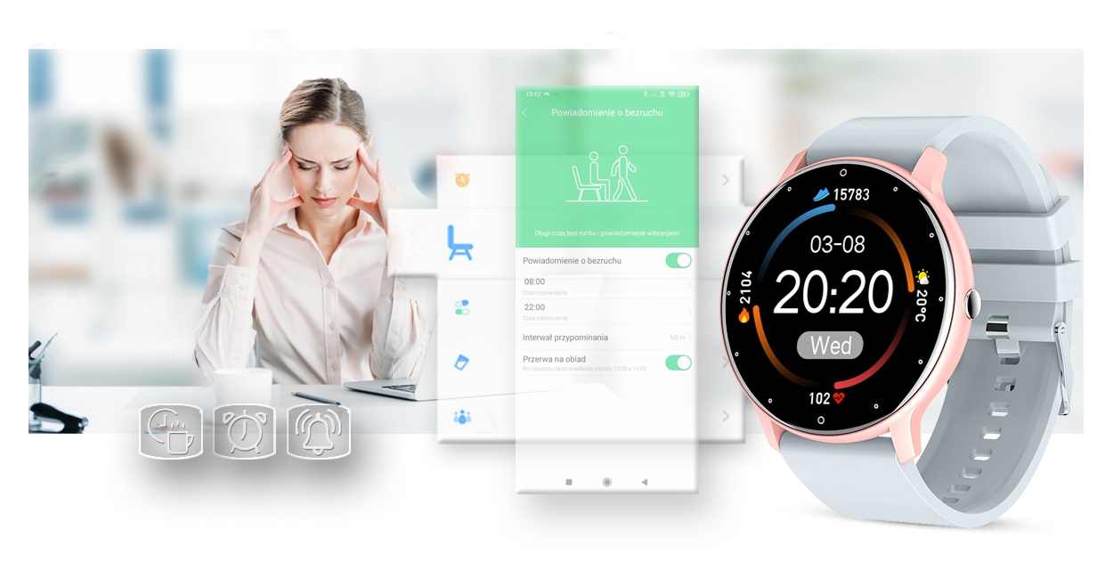 Uzyskaj harmonię pomiędzy aktywnością a wypoczynkiem! Pomoże Ci w tym takie narzędzie, jak monitor braku aktywności. Jeżeli się zasiedzisz – smartwatch GRAVITY przypomni Ci o dłuższym czasie bez aktywności. Koniec wymówek, Twój nowy smartwatch Gravity wie, że ruch to zdrowie!