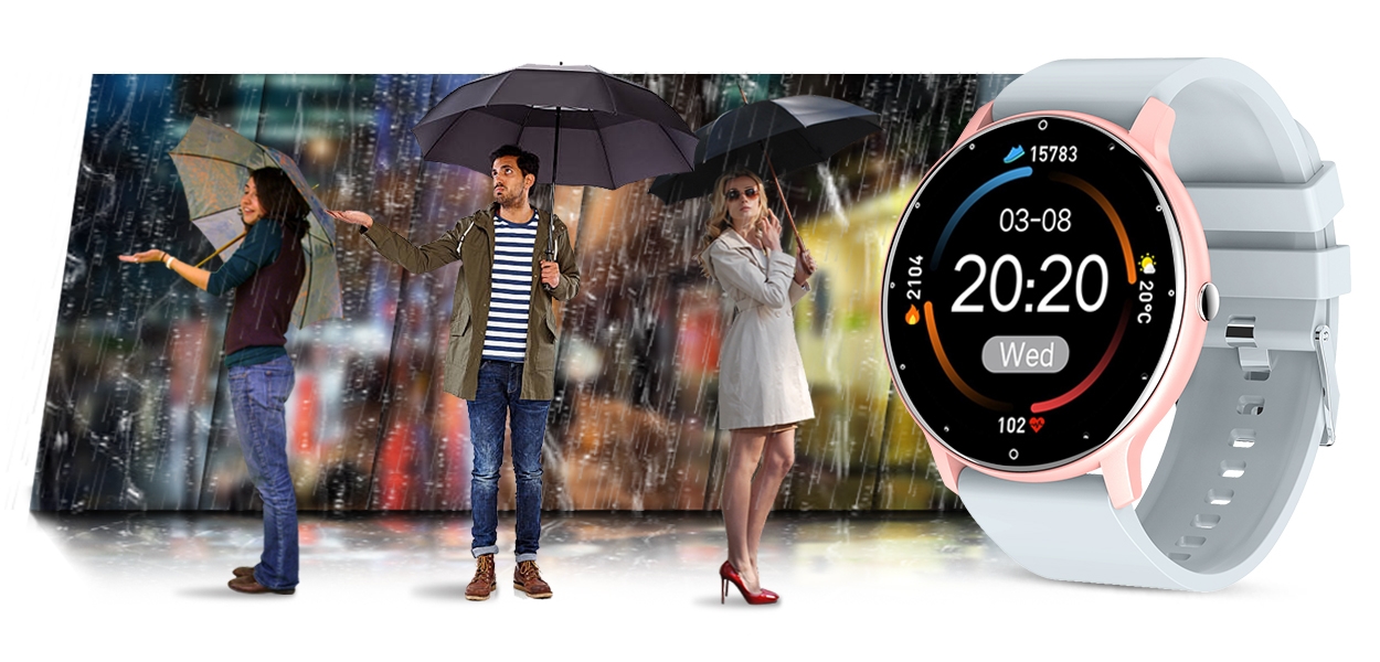 Dobry sprzęt powinien nadążać za właścicielem, dlatego smartwatch posiada klasę wodoszczelności IP67. Smartwatch odporny jest na lekkie zachlapania i delikatny kontakt z wodą. Smartwatch jest również odporny na delikatny pył i kurz atmosferyczny.W smartwatchu nie można nurkować, skakać do wody, używać w saunie lub narażać na kontakt z słoną, gorącą lub lodowatą wodą.