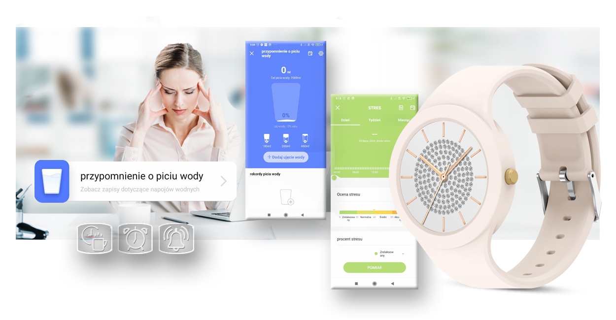 Dzięki sensorowi możesz w każdej chwili zmierzyć lub wykonać pomiar: ciśnienie krwi, tętno lub saturację – zawartość tlenu we krwi w swoim organizmie. Kontroluj wyniki podczas każdej aktywności fizycznej. Niezależnie czy jeździsz na rowerze, biegasz, czy też po prostu jesteś w pracy lub odpoczywasz. Twój smartwatch GRAVITY stanie się osobistym asystentem dbającym o twoje zdrowie każdego dnia.
