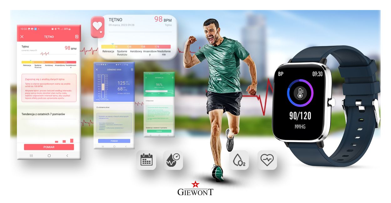 Zegarki Giewont wyróżniają się wysoką jakością wykonania oraz atrakcyjnym stosunkiem jakości do ceny. Dzięki zastosowaniu nowoczesnych technologii, smartwatche tej marki oferują funkcje takie jak monitorowanie tętna, ciśnienia krwi, saturacji, licznik kroków, spalonych kalorii oraz kontrolę snu. Dodatkowo, wybrane modele wyposażone są w funkcję SmartCall, umożliwiającą prowadzenie rozmów telefonicznych bezpośrednio z poziomu zegarka. Wodoszczelność na poziomie IP67 lub IP68 zapewnia odporność na zachlapania i deszcz, co czyni je idealnymi towarzyszami podczas treningów i codziennych aktywności.