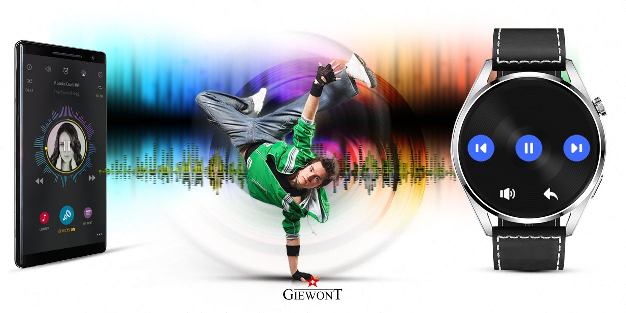 Sterowanie muzyką Każdy lubi słuchać swoją ulubioną muzykę. Dzięki bezprzewodowemu połączeniu poprzez bluetooth, od teraz możesz sterować odtwarzaczem muzycznym twojego telefonu komórkowego z poziomu smartwatcha. W ten sposób możesz uprawiać sport w rytm ulubionej muzyki lub relaksować się bez konieczności wyciągania smartfona. |