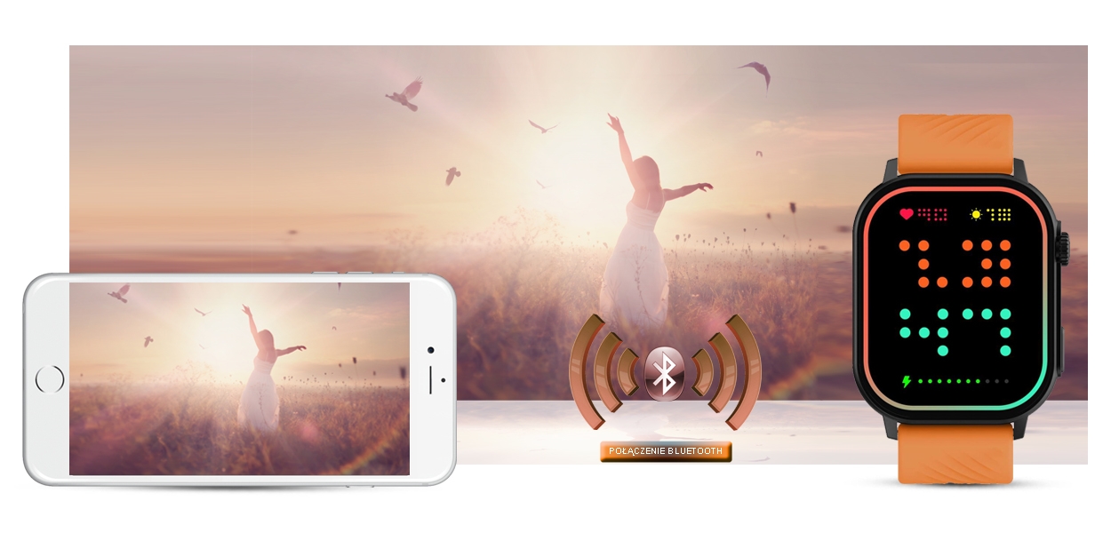 Ten smartwatch możesz połączyć ze swoim Smartfonem. Kompatybilność z systemem Android 5.0 i nowszy oraz iOS 9.0 i nowszy. Oznacza to, że smartwatch połączy się ze wszystkimi telefonami na systemie ANDROID i iOS.