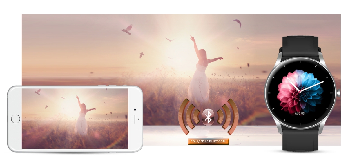 Ten smartwatch możesz połączyć ze swoim Smartfonem. Kompatybilność z systemem Android 5.0 i nowszy oraz iOS 9.0 i nowszy. Oznacza to, że smartwatch połączy się ze wszystkimi telefonami na systemie ANDROID i iOS.