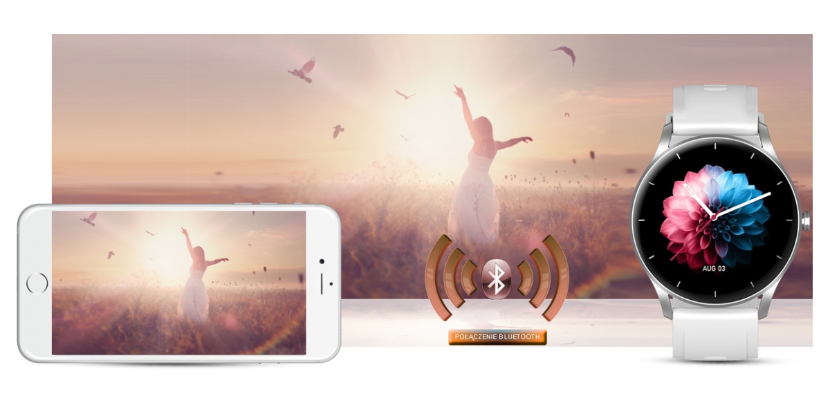 Ten smartwatch możesz połączyć ze swoim Smartfonem. Kompatybilność z systemem Android 5.0 i nowszy oraz iOS 9.0 i nowszy. Oznacza to, że smartwatch połączy się ze wszystkimi telefonami na systemie ANDROID i iOS.