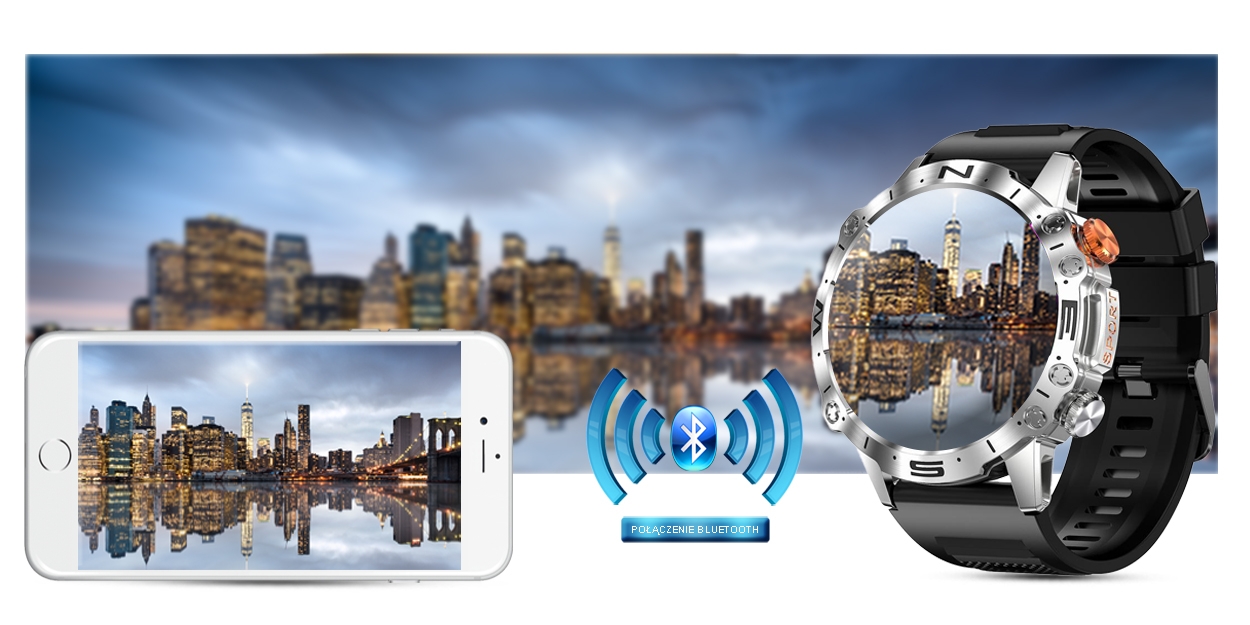 Ten smartwatch możesz połączyć ze swoim Smartfonem. Kompatybilność z systemem Android 5.0 i nowszy oraz iOS 8.0 i nowszy. Oznacza to, że smartwatch połączy się ze wszystkimi telefonami na systemie ANDROID i iOS.