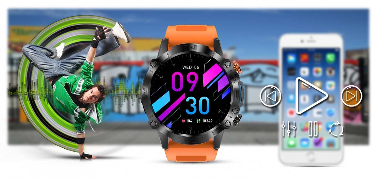 Każdy lubi słuchać swoją ulubioną muzykę. Dzięki bezprzewodowemu połączeniu poprzez bluetooth, od teraz możesz sterować odtwarzaczem muzycznym twojego telefonu komórkowego z poziomu smartwatcha. W ten sposób możesz uprawiać sport w rytm ulubionej muzyki lub relaksować się bez konieczności wyciągania smartfona.