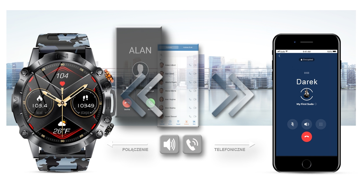 Po sparowaniu smartwatcha z twoim smartfonem, możesz bezproblemowo odbierać i wykonywać połączenia telefoniczne. Wbudowany głośnik oraz mikrofon pozwala rozmawiać bez konieczności wyciągania telefonu komórkowego.