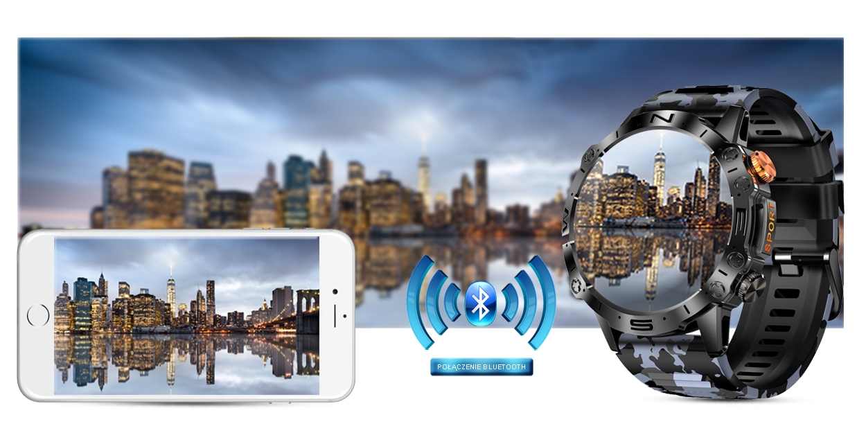 Ten smartwatch możesz połączyć ze swoim Smartfonem. Kompatybilność z systemem Android 5.0 i nowszy oraz iOS 8.0 i nowszy. Oznacza to, że smartwatch połączy się ze wszystkimi telefonami na systemie ANDROID i iOS.