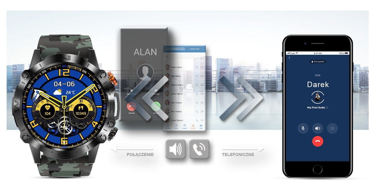 Po sparowaniu smartwatcha z twoim smartfonem, możesz bezproblemowo odbierać i wykonywać połączenia telefoniczne. Wbudowany głośnik oraz mikrofon pozwala rozmawiać bez konieczności wyciągania telefonu komórkowego.
