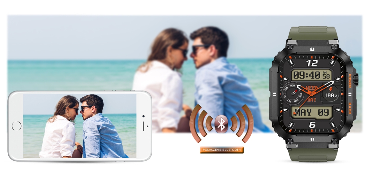 Ten smartwatch możesz połączyć ze swoim Smartfonem. Kompatybilność z systemem Android 5.0 i nowszy oraz iOS 8.0 i nowszy. Oznacza to, że smartwatch połączy się ze wszystkimi telefonami na systemie ANDROID i iOS.