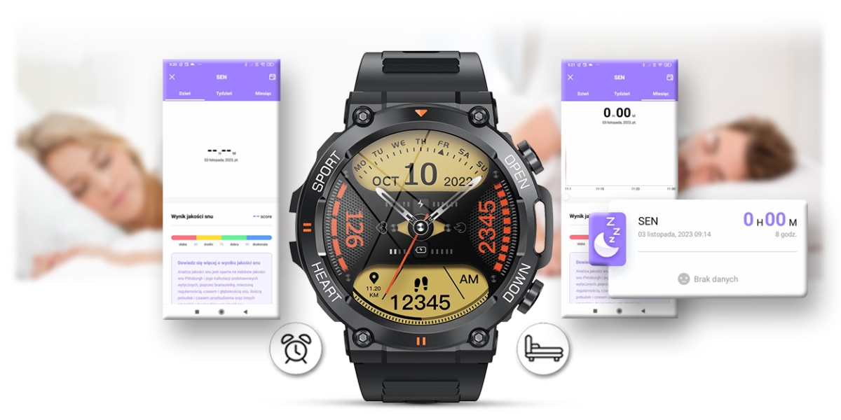 Funkcja ta pozwala monitorować czas i jakoś snu każdej nocy. Po zsynchronizowaniu danych z aplikacją możesz sprawdzać i analizować jakość swojego snu. Historia pokaże jak śpisz i czy twój sen jest dobrej jakości. Po ciężkim dniu każdy musi się wyspać, żeby nabrać sił na kolejny dzień i w tym pomoże Ci ten smartwatch.