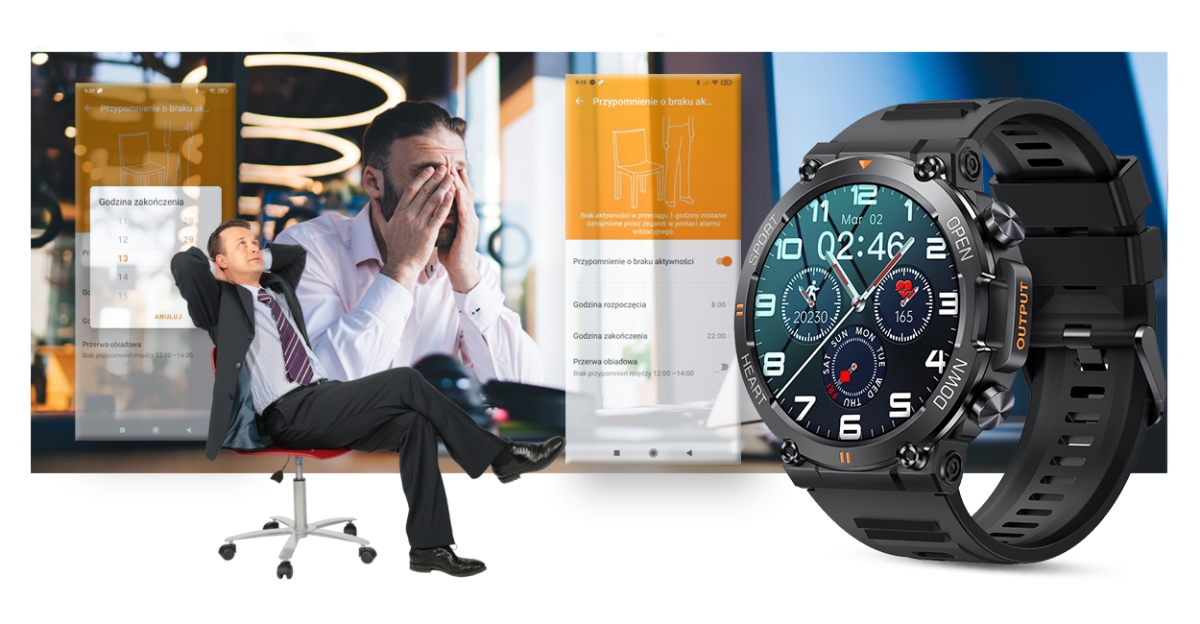 Uzyskaj harmonię pomiędzy aktywnością a wypoczynkiem! Pomoże Ci w tym takie narzędzie, jak monitor braku aktywności. Jeżeli się zasiedzisz – smartwatch GRAVITY przypomni Ci o dłuższym czasie bez aktywności. Koniec wymówek, Twój nowy smartwatch Gravity wie, że ruch to zdrowie!