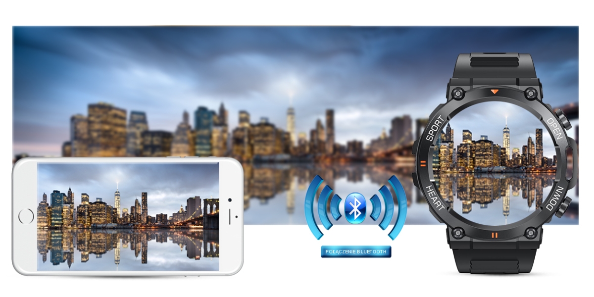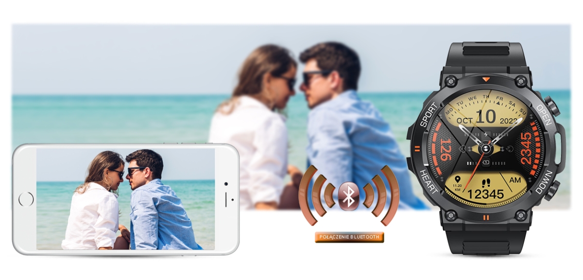 Ten smartwatch możesz połączyć ze swoim Smartfonem. Kompatybilność z systemem Android 4.4 i nowszy oraz iOS 8.0 i nowszy. Oznacza to, że smartwatch połączy się ze wszystkimi telefonami na systemie ANDROID i iOS.