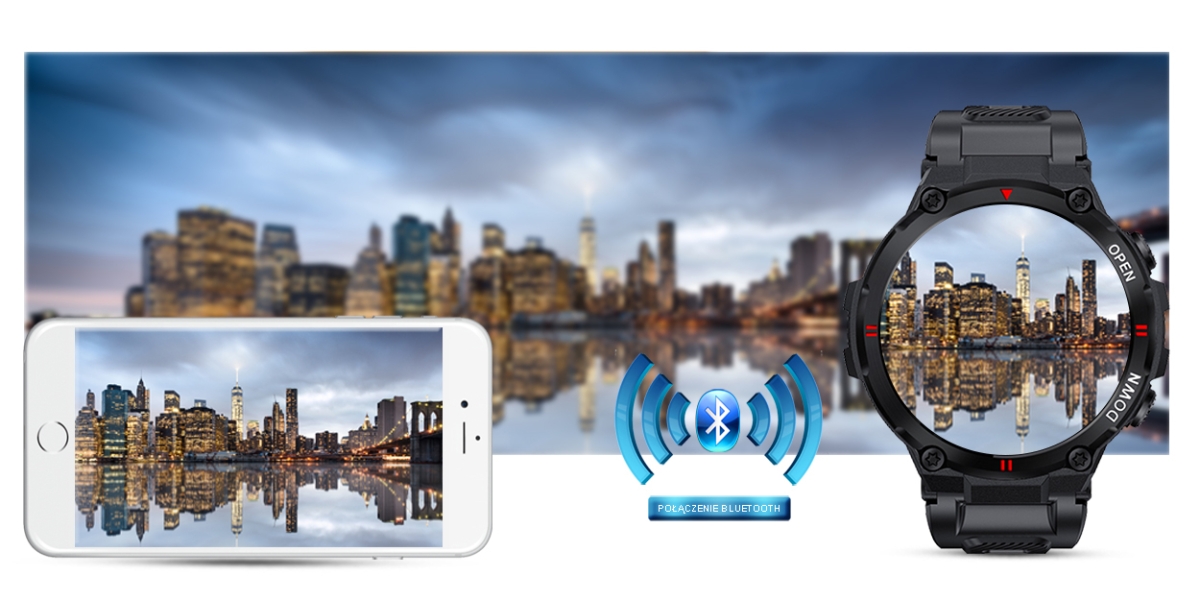 Ten smartwatch możesz połączyć ze swoim Smartfonem. Kompatybilność z systemem Android 5.0 i nowszy oraz iOS 9.0 i nowszy. Oznacza to, że smartwatch połączy się ze wszystkimi telefonami na systemie ANDROID i iOS.