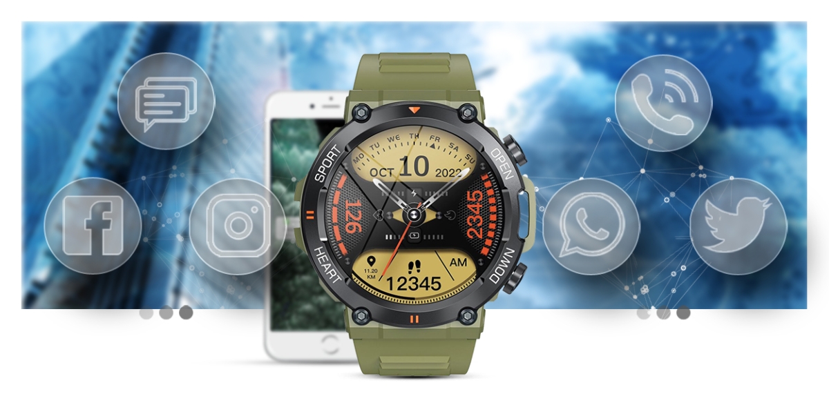 Z tym smartwatchem nie przegapisz tego, co ważne. Od teraz wiadomości SMS oraz z Facebook, Twitter, Whatsapp, Skype itp. wyświetlane są na tarczy w czasie rzeczywistym. Nie musisz odrywać się od pracy czy aktywności – wystarczy podnieść rękę, aby wyświetlić wiadomości!