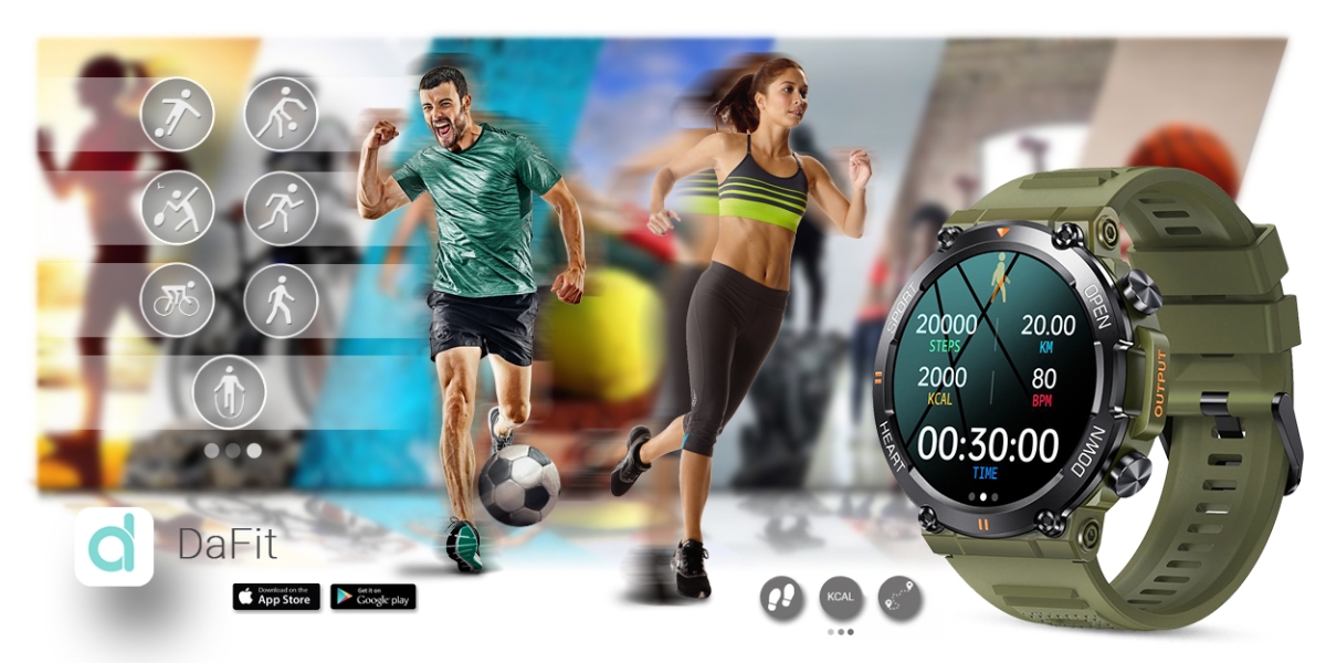 Smartwatch idealny dla aktywnych osób, którzy czas wolny spędzają na uprawianiu sportu i dbanie o zdrowy tryb życia. Ten model posiada wiele różnych trybów sportowych: koszykówka, rower, bieganie, chodzenie, skakanie, piłka nożna i badminton, które pozwolą w łatwy sposób kontrolować trening lub zabawę sportową. Pozwoli ci zaplanować i kontrolować czas, dystans, spalanie kalorii i efekt treningu.