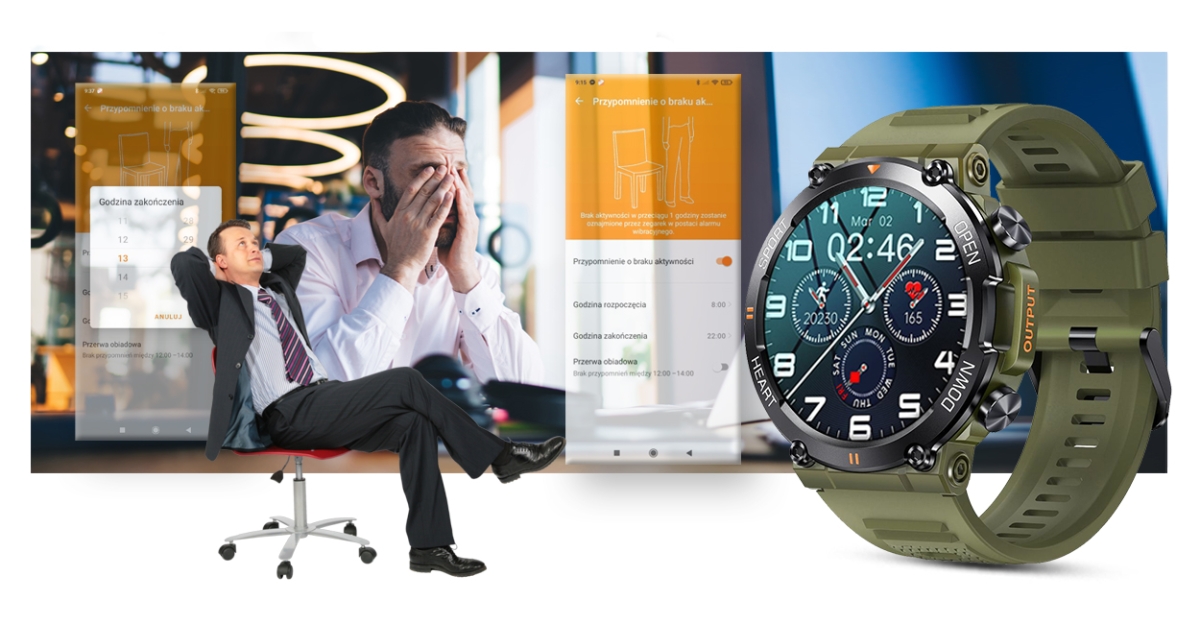 Uzyskaj harmonię pomiędzy aktywnością a wypoczynkiem! Pomoże Ci w tym takie narzędzie, jak monitor braku aktywności. Jeżeli się zasiedzisz – smartwatch GRAVITY przypomni Ci o dłuższym czasie bez aktywności. Koniec wymówek, Twój nowy smartwatch Gravity wie, że ruch to zdrowie!
