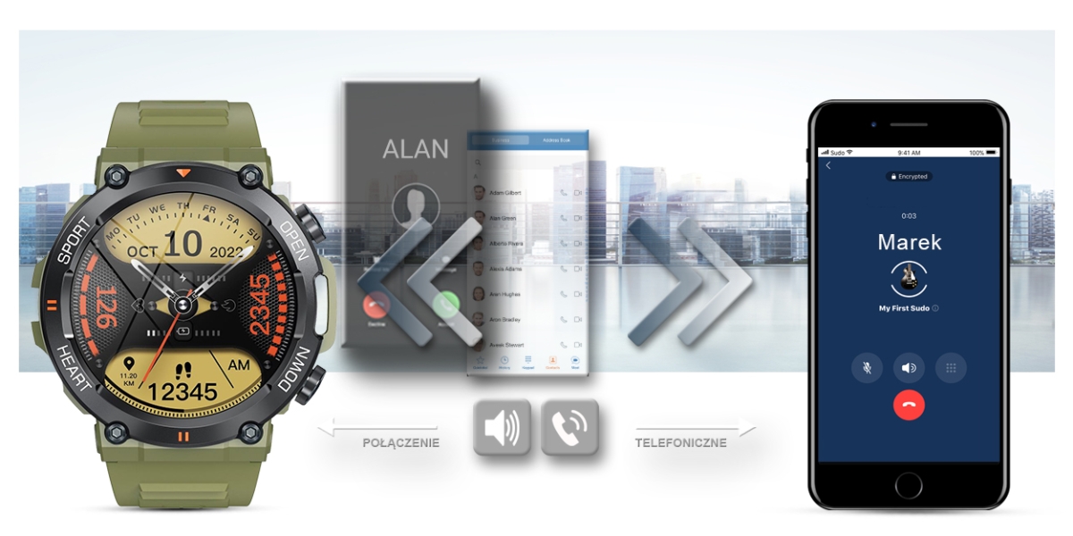Ten smartwatch możesz połączyć ze swoim Smartfonem. Kompatybilność z systemem Android 4.4 i nowszy oraz iOS 8.0 i nowszy. Oznacza to, że smartwatch połączy się ze wszystkimi telefonami na systemie ANDROID i iOS.