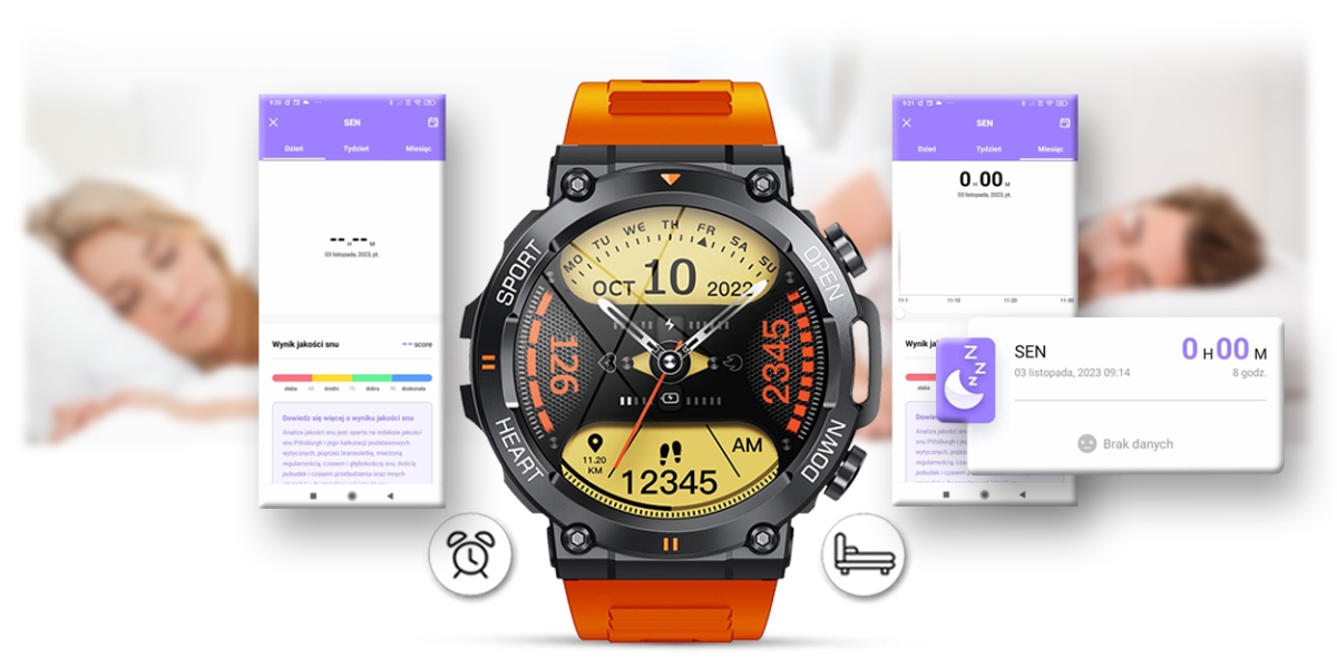 Funkcja ta pozwala monitorować czas i jakoś snu każdej nocy. Po zsynchronizowaniu danych z aplikacją możesz sprawdzać i analizować jakość swojego snu. Historia pokaże jak śpisz i czy twój sen jest dobrej jakości. Po ciężkim dniu każdy musi się wyspać, żeby nabrać sił na kolejny dzień i w tym pomoże Ci ten smartwatch.