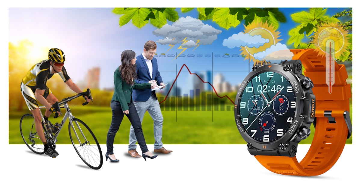Smartwatch po podłączeniu z aplikacją wyświetla dane o pogodzie. Teraz wystarczy jedno spojrzenia na smartwatcha i już wiesz jaka pogoda będzie Ci towarzyszyć w najbliższym czasie. Dzięki pogodzie w smartwatchu możesz lepiej zaplanować swoją aktywność i ubrać się odpowiednio do otaczającej aury!