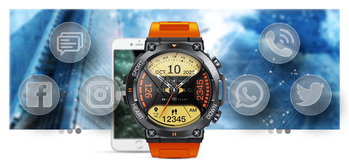 Z tym smartwatchem nie przegapisz tego, co ważne. Od teraz wiadomości SMS oraz z Facebook, Twitter, Whatsapp, Skype itp. wyświetlane są na tarczy w czasie rzeczywistym. Nie musisz odrywać się od pracy czy aktywności – wystarczy podnieść rękę, aby wyświetlić wiadomości!