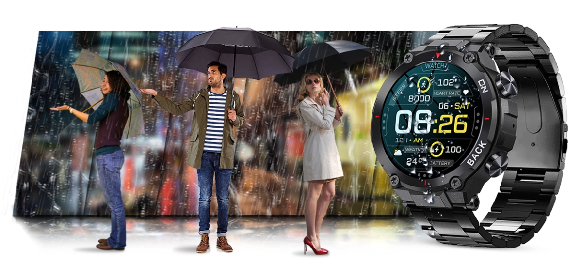 Dobry sprzęt powinien nadążać za właścicielem, dlatego smartwatch posiada klasę wodoszczelności IP67. Smartwatch odporny jest na lekkie zachlapania i delikatny kontakt z wodą. Smartwatch jest również odporny na delikatny pył i kurz atmosferyczny. W smartwatchu nie można nurkować, skakać do wody, używać w saunie lub narażać na kontakt z słoną, gorącą lub lodowatą wodą.