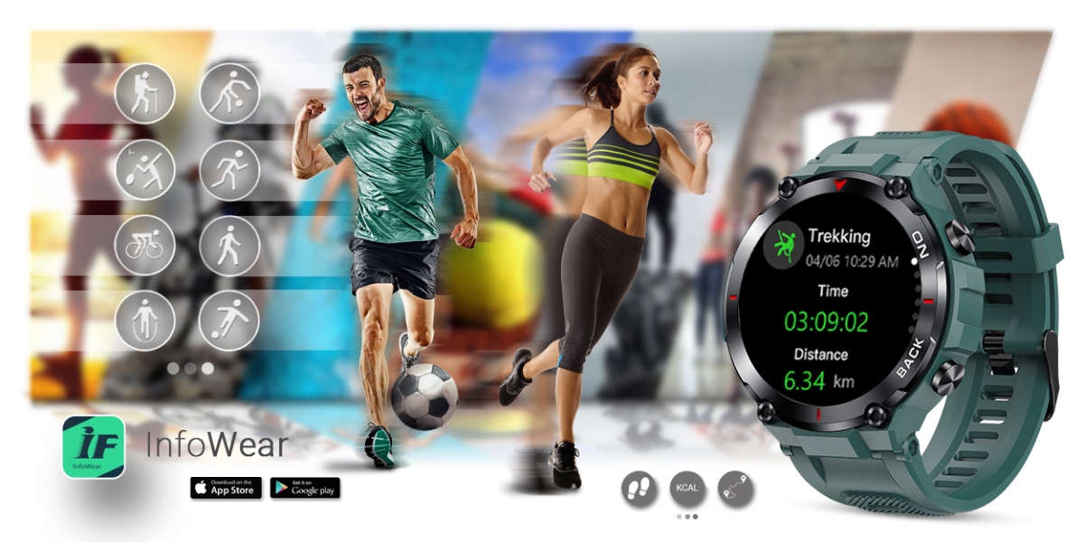 Smartwatch idealny dla aktywnych osób, którzy czas wolny spędzają na uprawianiu sportu i dbanie o zdrowy tryb życia. Ten model posiada wiele różnych trybów sportowych: koszykówka, rower, bieganie, chodzenie, skakanie, piłka nożna i badminton, które pozwolą w łatwy sposób kontrolować trening lub zabawę sportową. Pozwoli ci zaplanować i kontrolować czas, dystans, spalanie kalorii i efekt treningu.