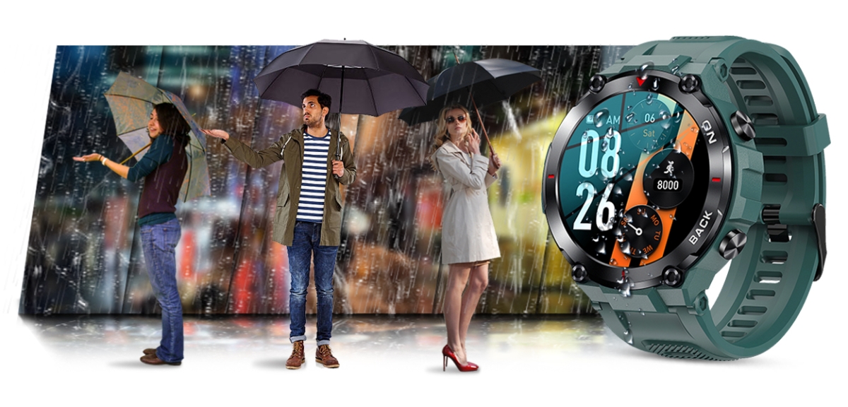 Dobry sprzęt powinien nadążać za właścicielem, dlatego smartwatch posiada klasę wodoszczelności IP67. Smartwatch odporny jest na lekkie zachlapania i delikatny kontakt z wodą. Smartwatch jest również odporny na delikatny pył i kurz atmosferyczny. W smartwatchu nie można nurkować, skakać do wody, używać w saunie lub narażać na kontakt z słoną, gorącą lub lodowatą wodą.