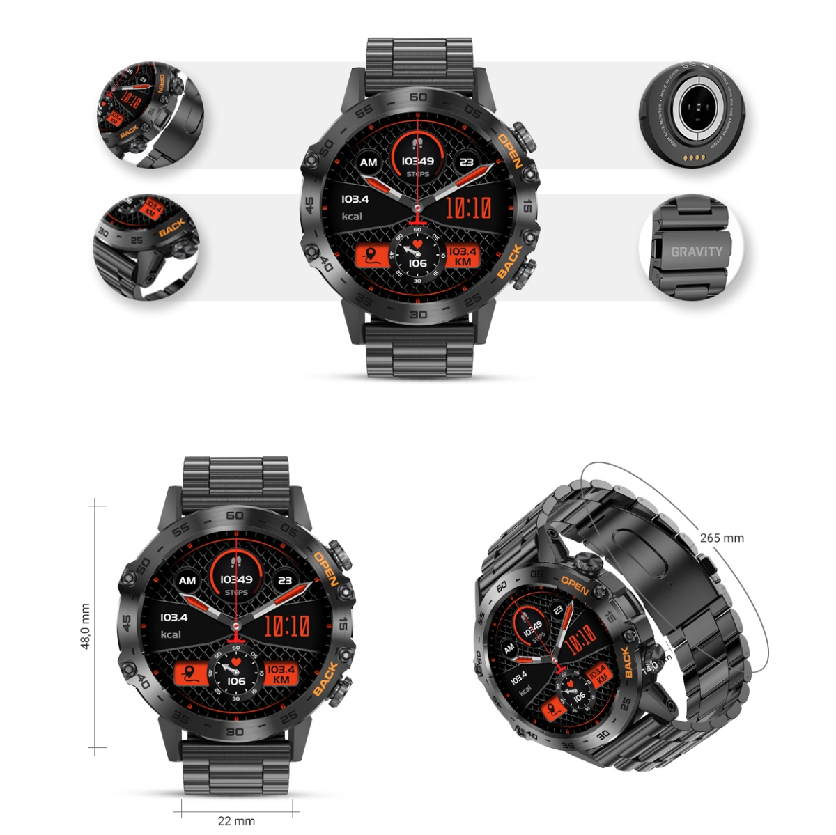 Zegarki Gravity to nowoczesne smartwatche łączące zaawansowaną technologię z eleganckim designem, idealne dla osób ceniących funkcjonalność i styl. Dzięki solidnej konstrukcji i wysokiej jakości materiałom, zegarki te sprawdzają się zarówno podczas intensywnych treningów, jak i w codziennym użytkowaniu.