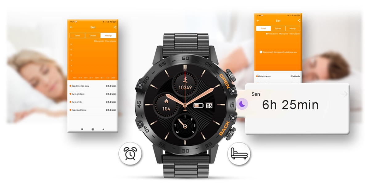 Funkcja ta pozwala monitorować czas i jakoś snu każdej nocy. Po zsynchronizowaniu danych z aplikacją możesz sprawdzać i analizować jakość swojego snu. Historia pokaże jak śpisz i czy twój sen jest dobrej jakości. Po ciężkim dniu każdy musi się wyspać, żeby nabrać sił na kolejny dzień i w tym pomoże Ci ten smartwatch.