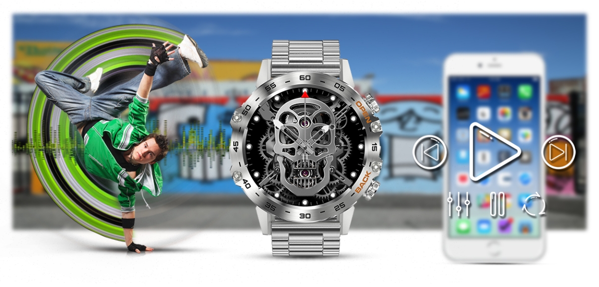 Każdy lubi słuchać swoją ulubioną muzykę. Dzięki bezprzewodowemu połączeniu poprzez bluetooth, od teraz możesz sterować odtwarzaczem muzycznym twojego telefonu komórkowego z poziomu smartwatcha. W ten sposób możesz uprawiać sport w rytm ulubionej muzyki lub relaksować się bez konieczności wyciągania smartfona.