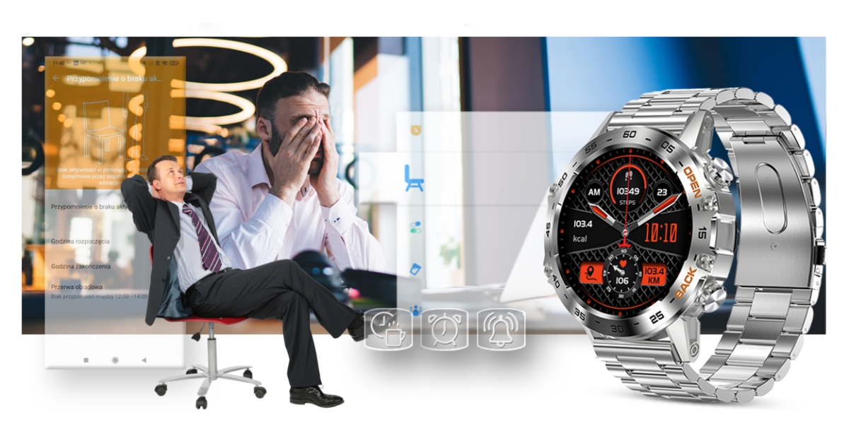 Uzyskaj harmonię pomiędzy aktywnością a wypoczynkiem! Pomoże Ci w tym takie narzędzie, jak monitor braku aktywności. Jeżeli się zasiedzisz – smartwatch GRAVITY przypomni Ci o dłuższym czasie bez aktywności. Koniec wymówek, Twój nowy smartwatch Gravity wie, że ruch to zdrowie!