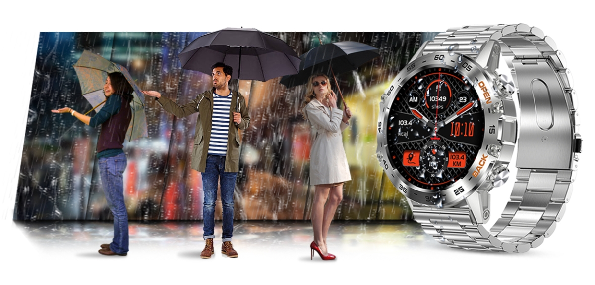 Dobry sprzęt powinien nadążać za właścicielem, dlatego smartwatch posiada klasę wodoszczelności IP67. Smartwatch odporny jest na lekkie zachlapania i delikatny kontakt z wodą. Smartwatch jest również odporny na delikatny pył i kurz atmosferyczny.W smartwatchu nie można nurkować, skakać do wody, używać w saunie lub narażać na kontakt z słoną, gorącą lub lodowatą wodą.