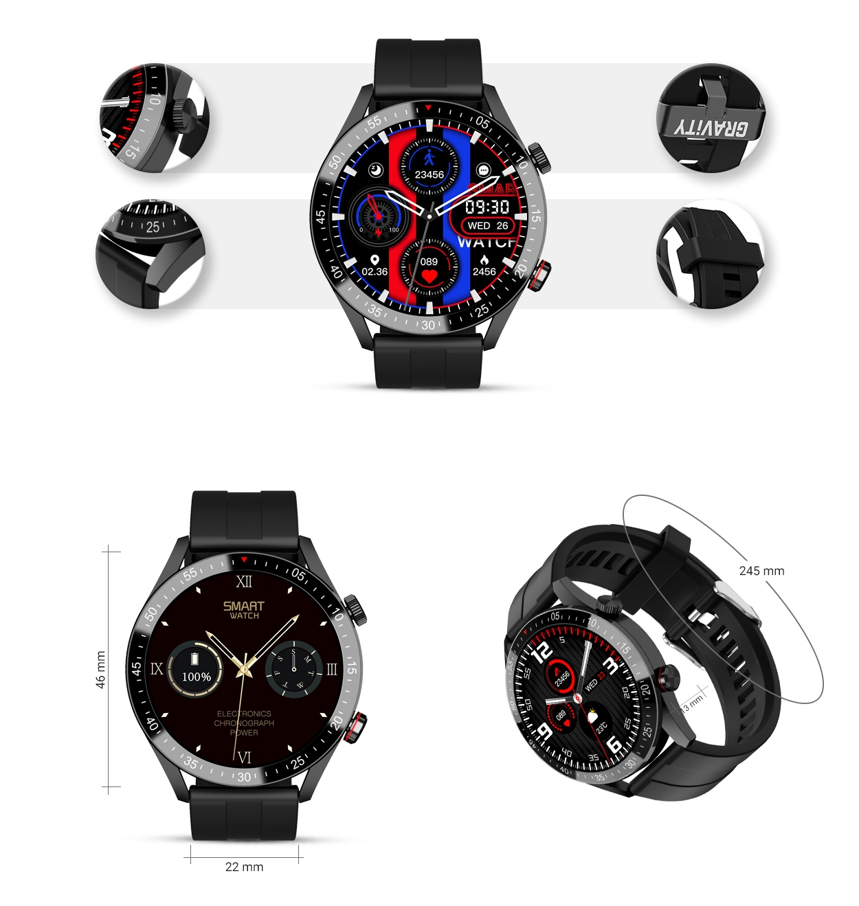 Smartwatche Gravity oferują szereg funkcji wspierających aktywny tryb życia: monitorowanie tętna, pomiar ciśnienia i natlenienia krwi, liczenie kroków, spalonych kalorii oraz pokonanego dystansu. Dodatkowo, umożliwiają odbieranie i wykonywanie połączeń, wyświetlanie powiadomień z aplikacji oraz zdalne sterowanie muzyką, co czyni je praktycznym asystentem na co dzień.