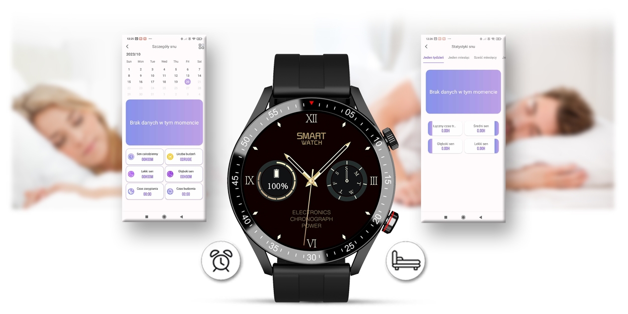 Funkcja ta pozwala monitorować czas i jakoś snu każdej nocy. Po zsynchronizowaniu danych z aplikacją możesz sprawdzać i analizować jakość swojego snu. Historia pokaże jak śpisz i czy twój sen jest dobrej jakości. Po ciężkim dniu każdy musi się wyspać, żeby nabrać sił na kolejny dzień i w tym pomoże Ci ten smartwatch.