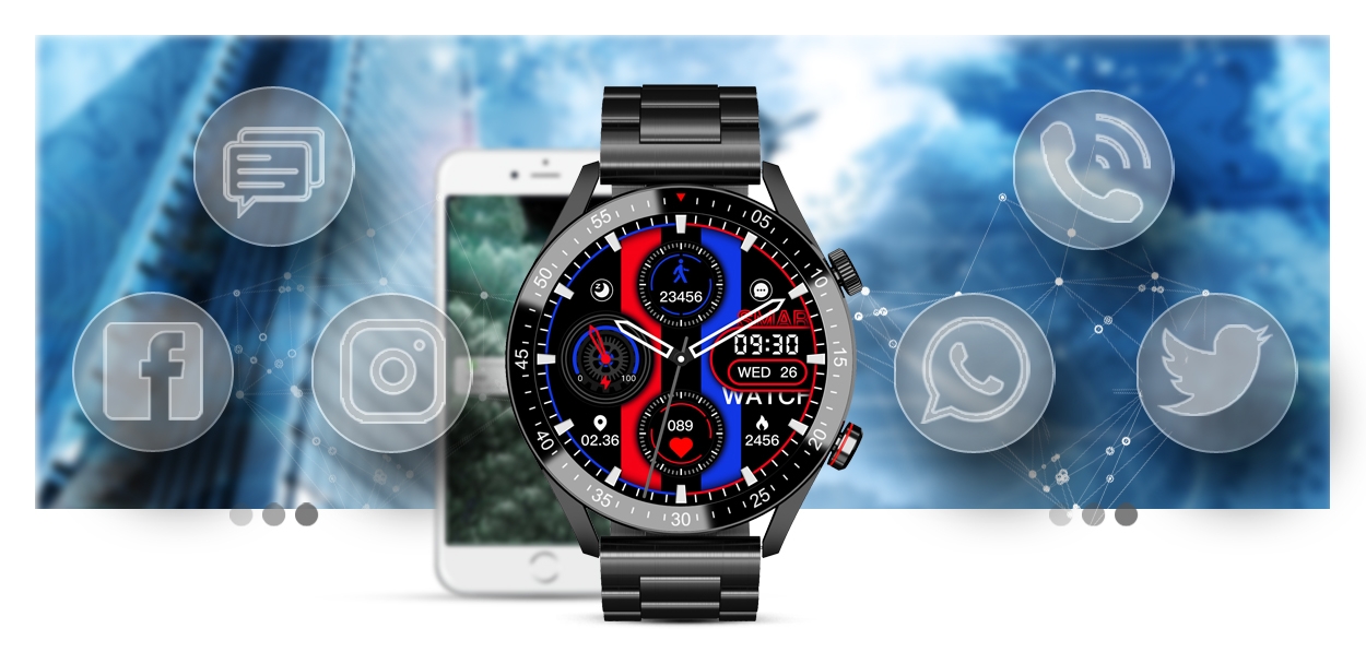 Z tym smartwatchem nie przegapisz tego, co ważne. Od teraz wiadomości SMS oraz z Facebook, Twitter, Whatsapp, Skype itp. wyświetlane są na tarczy w czasie rzeczywistym. Nie musisz odrywać się od pracy czy aktywności – wystarczy podnieść rękę, aby wyświetlić wiadomości! Wiadomości, połączenia i informacje – od teraz wszystko w jednym miejscu i na jednym ekranie.