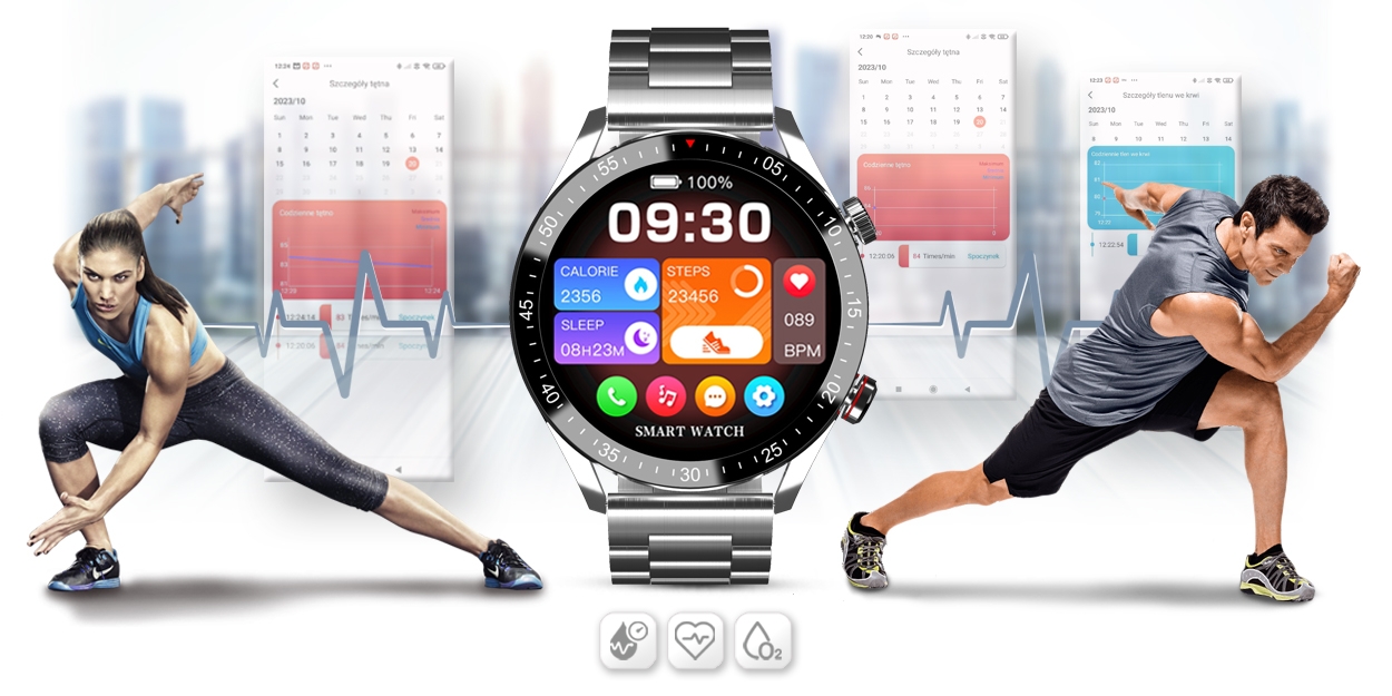 Dzięki sensorowi możesz w każdej chwili zmierzyć lub wykonać pomiar: ciśnienie krwi, tętno lub saturację – zawartość tlenu we krwi w swoim organizmie. Kontroluj wyniki podczas każdej aktywności fizycznej. Niezależnie czy jeździsz na rowerze, biegasz, czy też po prostu jesteś w pracy lub odpoczywasz. Twój smartwatch GRAVITY stanie się osobistym asystentem dbającym o twoje zdrowie każdego dnia.
