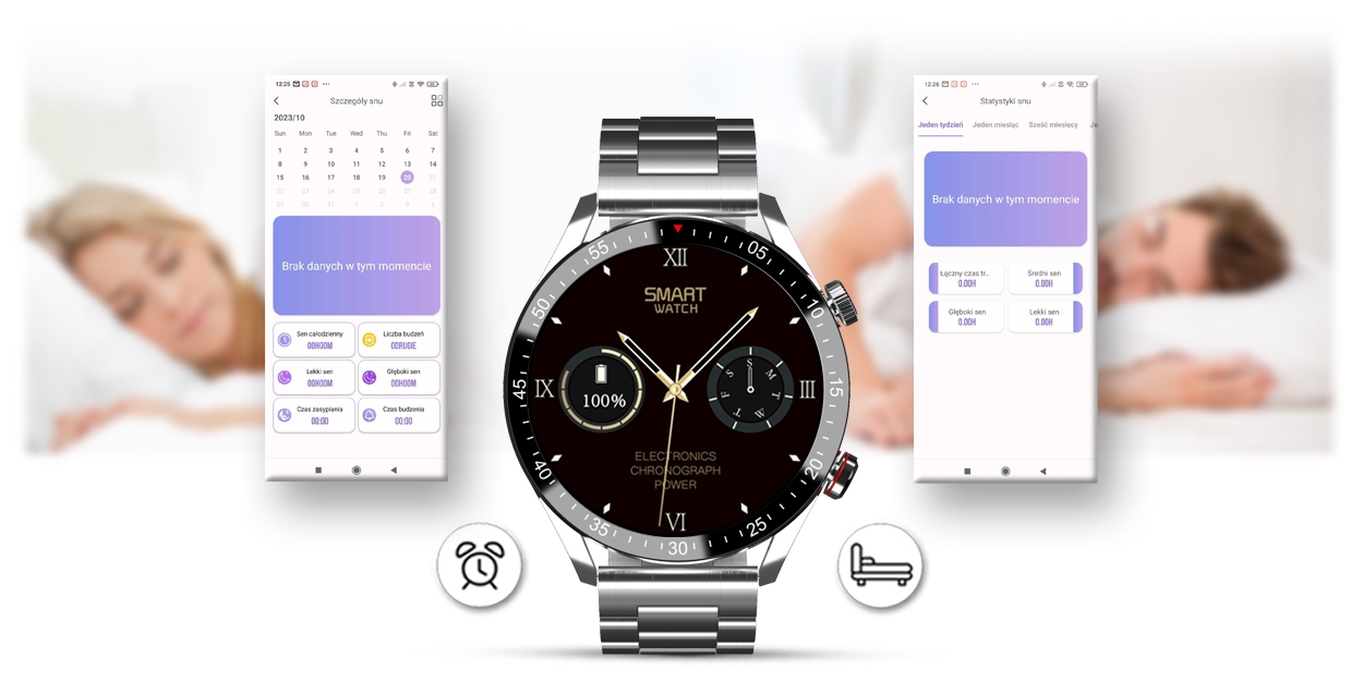 Funkcja ta pozwala monitorować czas i jakoś snu każdej nocy. Po zsynchronizowaniu danych z aplikacją możesz sprawdzać i analizować jakość swojego snu. Historia pokaże jak śpisz i czy twój sen jest dobrej jakości. Po ciężkim dniu każdy musi się wyspać, żeby nabrać sił na kolejny dzień i w tym pomoże Ci ten smartwatch.