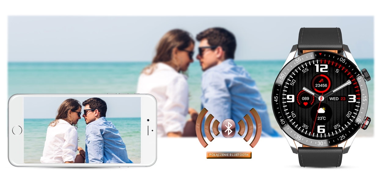 Ten smartwatch możesz połączyć ze swoim Smartfonem. Kompatybilność z systemem Android 5.0 i nowszy oraz iOS 9.0 i nowszy. Oznacza to, że smartwatch połączy się ze wszystkimi telefonami na systemie ANDROID i iOS.