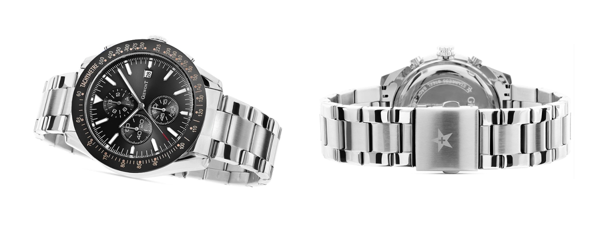 Komfortowa, stalowa bransoleta to znakomite uzupełnienie tego zegarka. Rodzaj bransolety jest gwarancją solidności i wygody podczas codziennego użytkowania. Komfort dopełnia odpowiednia jakość stali, która komfortowo dopasowuje się do męskiego nadgarstka. Zapięcie sygnowane jest logiem marki Giewont, co podnosi prestiż zegarka i zapewnia wyjątkowość na tle innych marek zegarków.